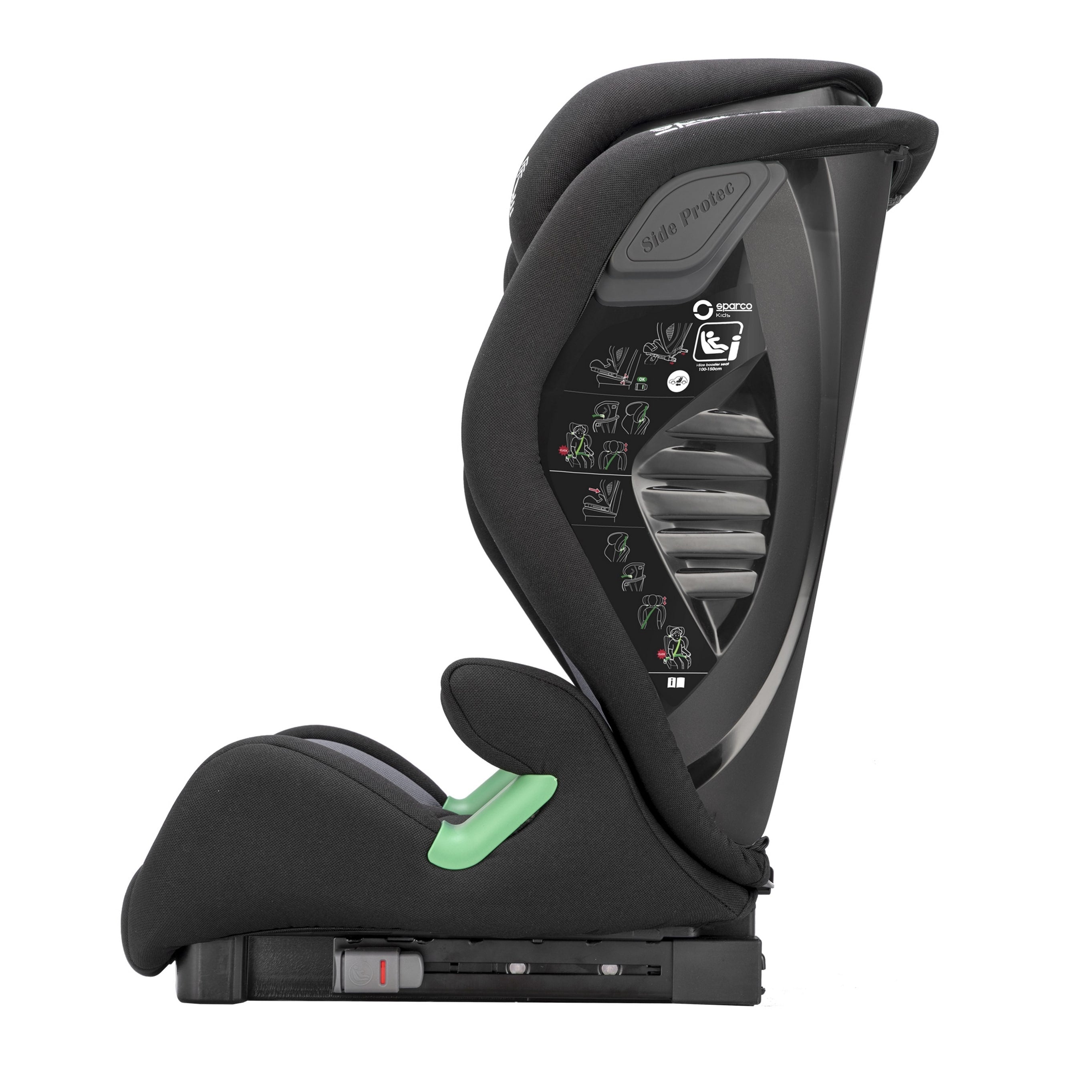 The car seat for children who are between 100-150 cm tall, this forward-facing car seat uses the car's built-in belts. It attaches easily with the Isofix system but also fits older cars without Isofix.